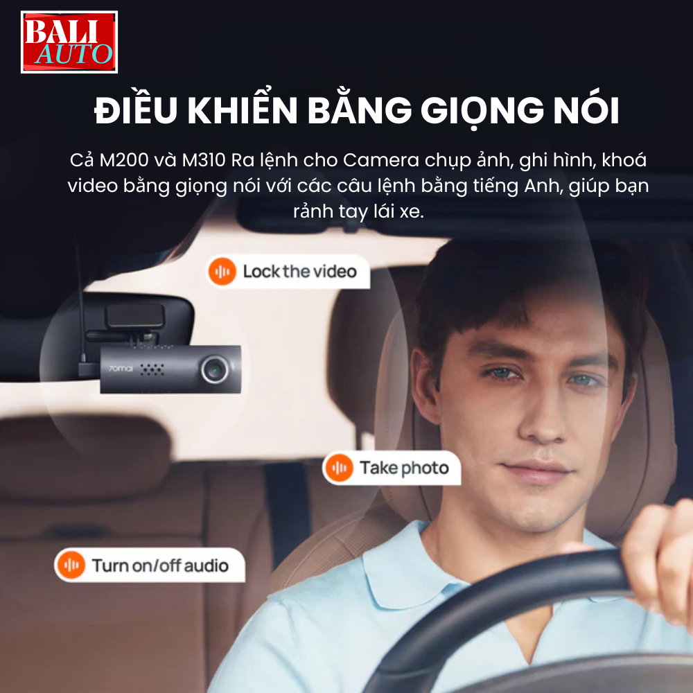 Chụp ảnh/quay video, bật/tắt âm thanh – tất cả chỉ bằng lệnh thoại đơn giản* trên M310, giúp bạn rảnh tay khỏi các cài đặt thủ công và đảm bảo trải nghiệm lái xe không lo lắng.