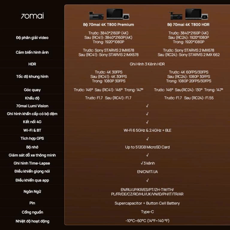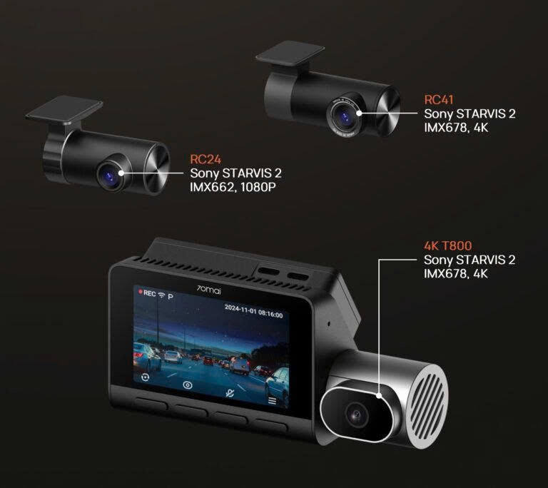 Camera 4K T800 mang đến chất lượng hình ảnh vượt trội nhờ cảm biến ảnh tiên tiến. Cả camera trước và sau đều sử dụng công nghệ Sony STARVIS 2 tiên tiến . Cảm biến lớn hơn 68% , độ nhạy sáng cao hơn 90% và hiệu suất chụp thiếu sáng tốt hơn 100% . Bạn sẽ có được trải nghiệm hình ảnh đỉnh cao với độ chi tiết phong phú, bất kể điều kiện ánh sáng.