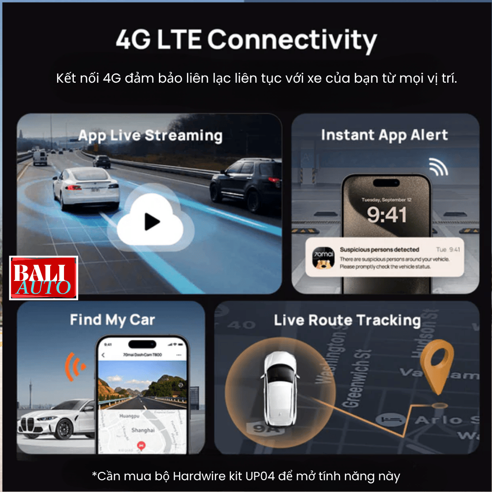 *Cần bộ Hardwire Kit 4G UP04 được bán riêng để thực hiện tính năng này
