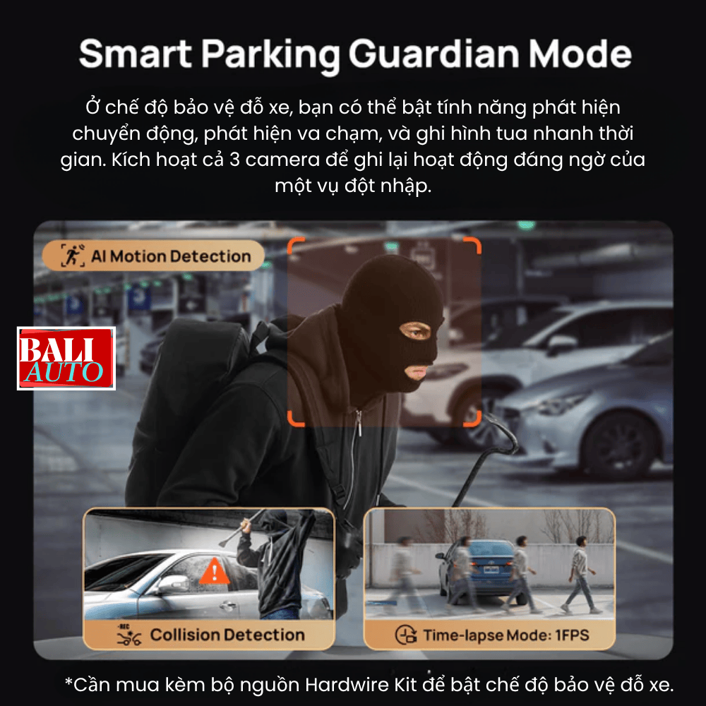 *Tính năng Giám sát đỗ xe yêu cầu Bộ kết nối cứng 70mai hoặc Bộ kết nối cứng 4G (bán riêng).