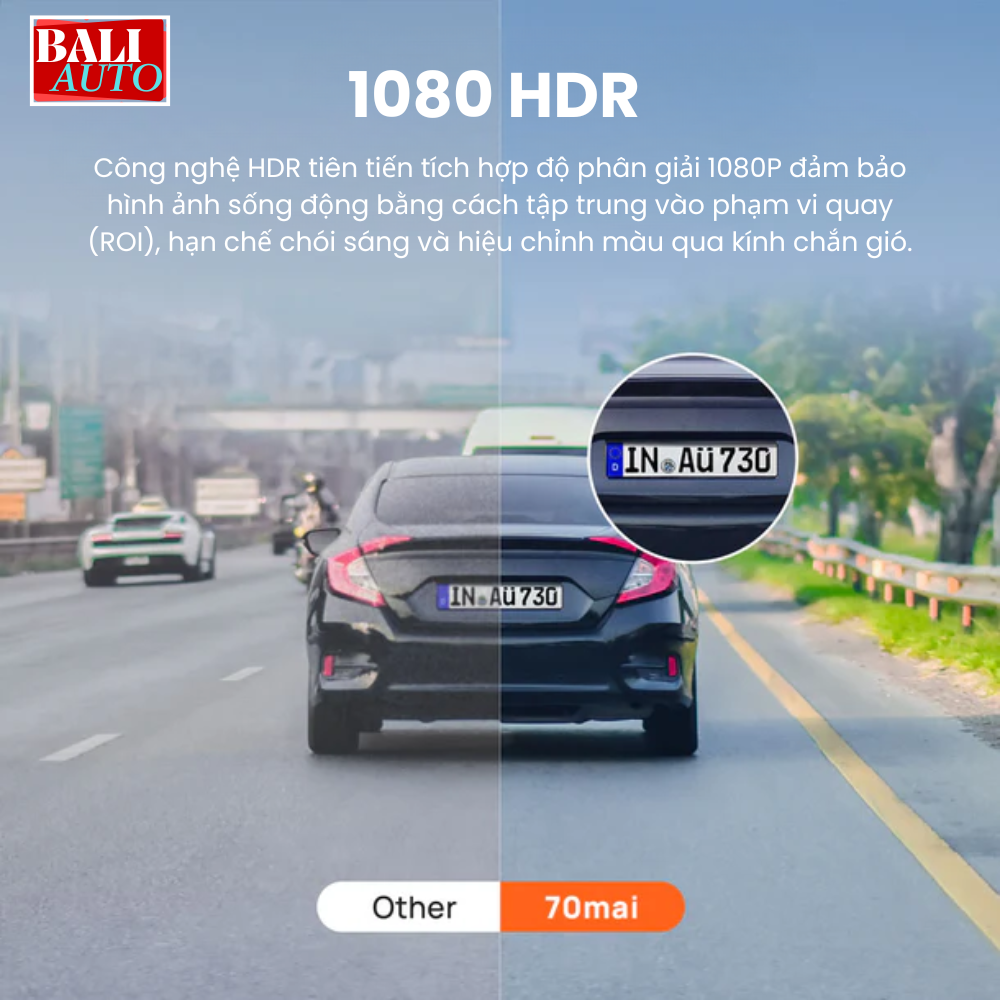 HDR được làm mới và công nghệ hình ảnh tiên tiến của 70mai tập trung sức mạnh vào phạm vi quan tâm (ROI), đảm bảo độ phơi sáng cân bằng, đồng thời hiệu chỉnh màu sắc và độ trong suốt của kính chắn gió để có góc nhìn sống động, chi tiết về mọi sắc thái.