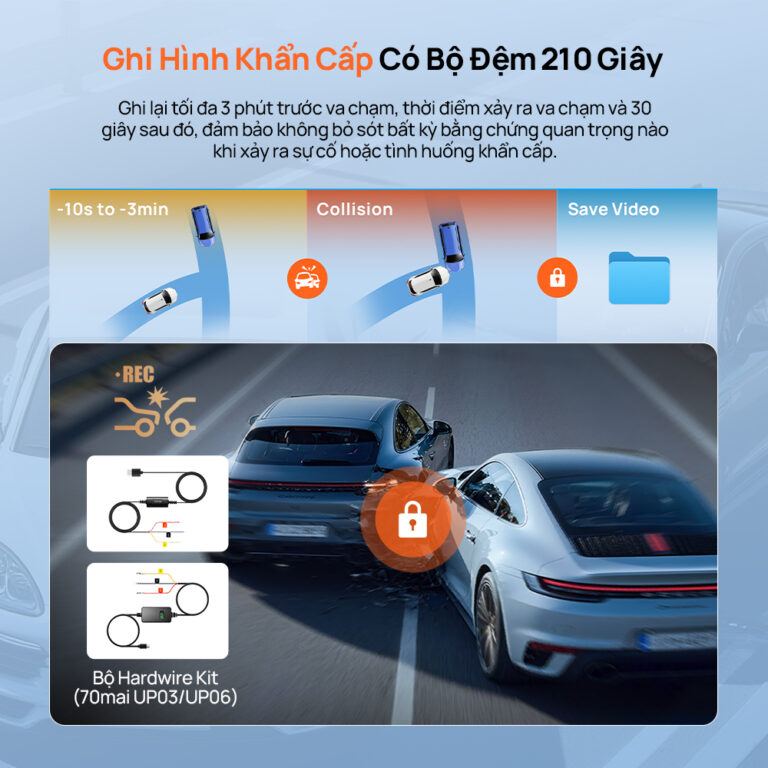 Không bỏ lỡ bất kỳ khoảnh khắc quan trọng nào. 70mai T400 tự động lưu lại tối đa lên tới 180 giây trước va chạm và 30 giây sau đó, đảm bảo toàn bộ diễn biến sự việc được ghi lại đầy đủ và liền mạch. Ngay cả khi bạn nhấn nút ghi hình muộn, hệ thống vẫn kích hoạt kịp thời và khóa video an toàn (Locked & Saved), sẵn sàng làm bằng chứng khi cần.