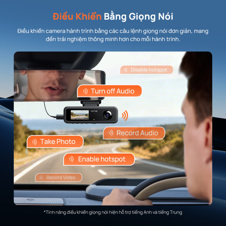Ra lệnh đơn giản, thao tác tức thì. 70mai T400 cho phép bạn điều khiển camera bằng giọng nói như chụp ảnh, ghi hình, bật/tắt ghi âm hay kích hoạt hotspot mà không cần rời tay khỏi vô lăng.